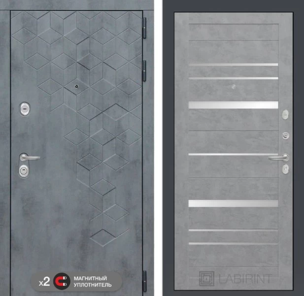 Дизайнерская входная Дверь Бетон класса Люкс с несколькими листами стали, звукоизоляцией и теплоизоляцией. Утепленный короб и полотно защитят от сквозняков и шумов. Модель не только надежная, комфортная, защищенная и высочайшего качества, но и очень красивая! Будет отлично сочетаться с интерьером дома, квартиры или офиса. Сейчас действует выгодное предложение по цене: 53 607 руб.